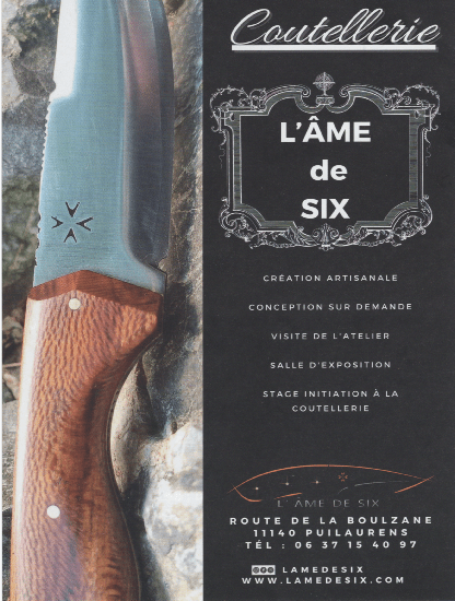 In Puilaurens, just down the road and en route to the castle, a specialist knife producer, L’ Âme de SIX, with a lovely workshop/showroom. You’ll find him on the Route de la Boulzane, the first building as you enter Puilaurens, there is a large car park outside.