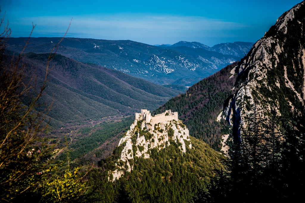 In some form the Chateau de Puilaurens has sat on top of an impossible rocky ridge since the 10th century making it one of the most impressive Cathar Castles to visit. It was reinforced after finding its way into the hands of the French Monarchy in the mid 13th century as it was in a strategic location being, at the time, the most southerly castle in France.
